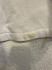 裾とプリント部分に汚れがございます。
